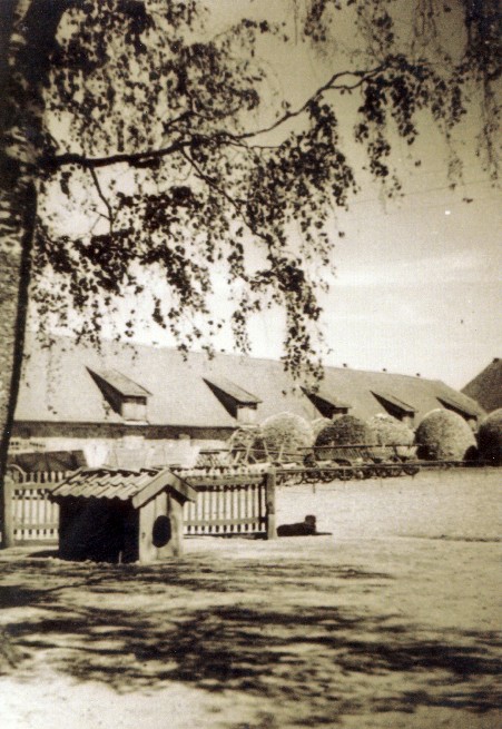 Die große Scheune im Jahr 1992. Dort wo der russische Wasserturm steht, stand früher das Pumpenhaus.